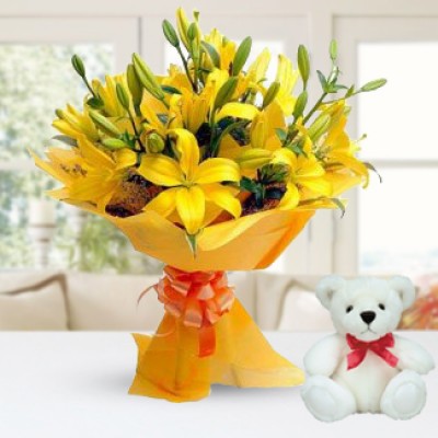 Yellow Lilies & Teddy